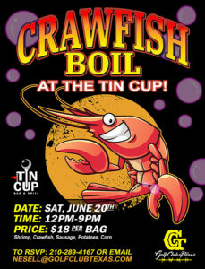 RSVP for our Absolutely Delicious Annual Crawfish Boil by emailing Nesell@golfclubtexas.com