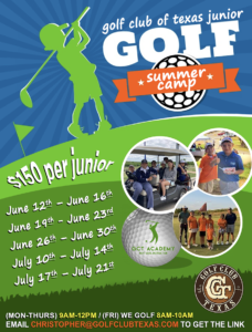 We have 5 week long Summer Camps that we will be rolling out this summer. Spots are limited so be sure to sign up for them as early as possible. Email Christopher@golfclubtexas.com for more information on signing up for the camp of your choice.