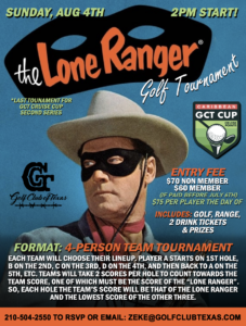 RSVP for our next leg in our GCT Cruise Cup, The Lone Ranger Tourney! Spots are limited and will fill up fast, email Zeke@golfclubtexas.com to secure your spot!