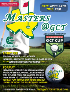 Join us for our annual Masters at GCT Tournament!! Spots are limited, so be sure to sign up early by emailing Zeke@golfclubtexas.com as this is also the FINAL event in our GCT Cruise Cup series, with the top 3 places winning a Royal Caribbean Cruise for 2!! The race is super tight so don’t miss out on this fun, and VERY rewarding event!