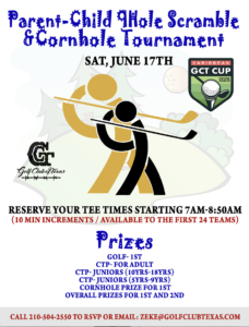 In the spirit of Father’s Day, our next GCT Cruise Cup event will be a 2 person golf & corn hole tournament. Sign up now on June 17th starting at 7am for an exciting event. Email Zeke@golfclubtexas.com to sign up for this event as all of our GCT Cruise Cup events fill up.