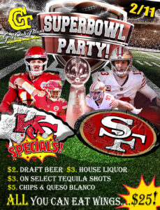Join us for a fun Super Bowl Party filled with amazing drink and food specials along with games!!